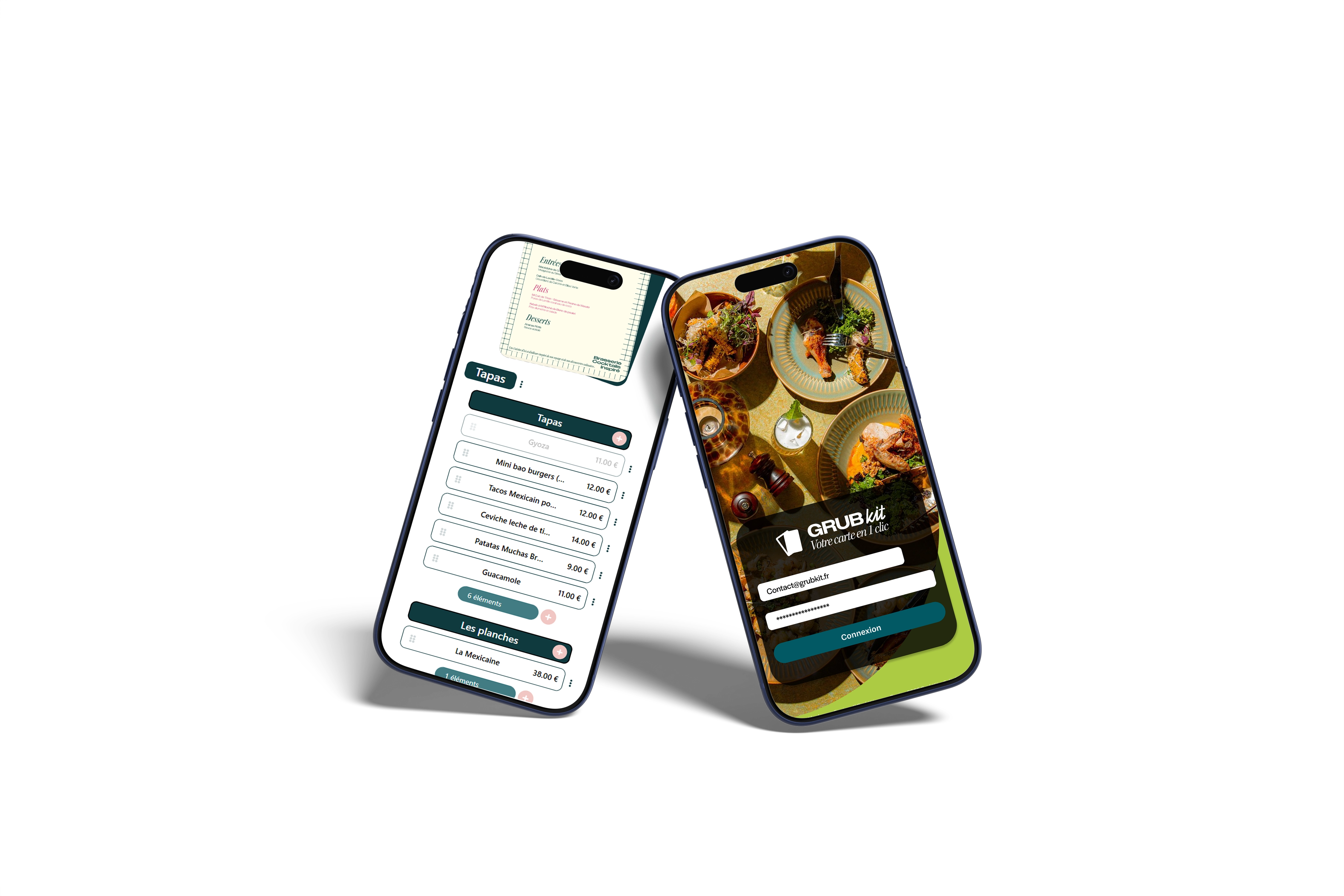GrubKit vous permet de gérer votre carte en digital et en version imprimée depuis une seule interface. Menus du jour, suggestions, boissons, événements : vous modifiez en un clic, et vous obtenez instantanément une carte prête à publier et prête à imprimer, fidèle à votre identité. Moins de friction, plus de cohérence, plus de temps pour l'essentiel : l'accueil et l'expérience.